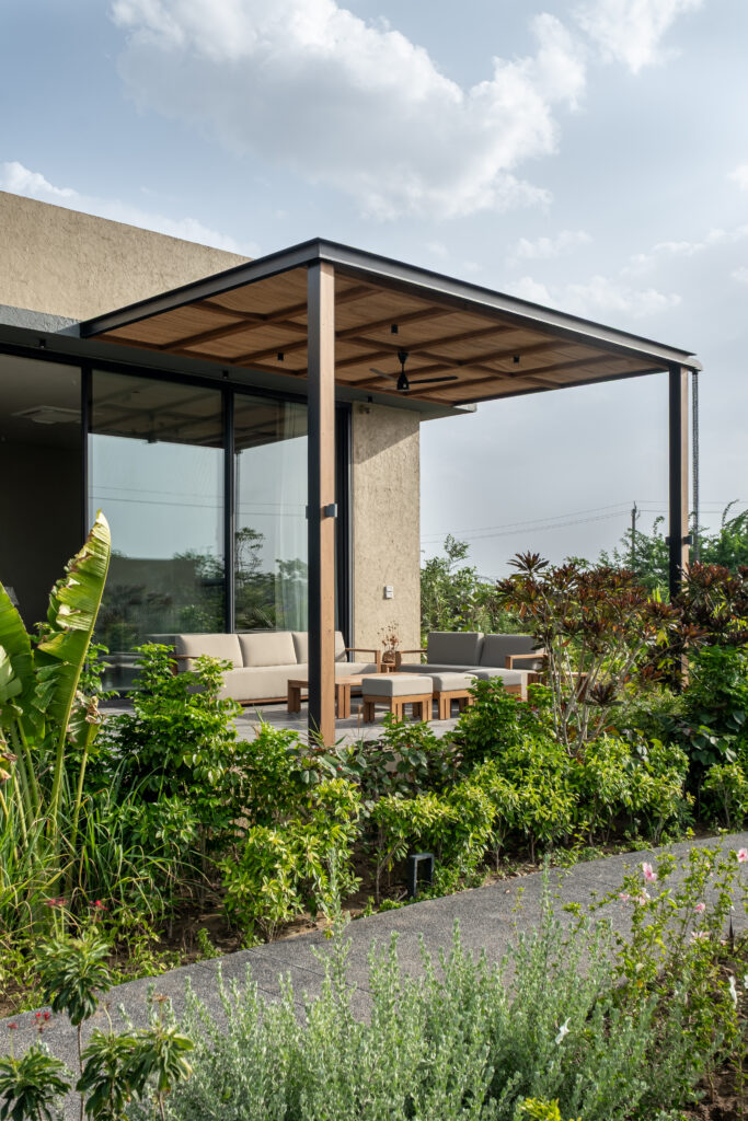Set within a lush, mature landscape, Parikh House is a 4 BHK villa designed as a warm, nature-connected family retreat. The architecture embraces transparency and natural materials, creating a living environment where indoors and outdoors merge seamlessly throughout the day.