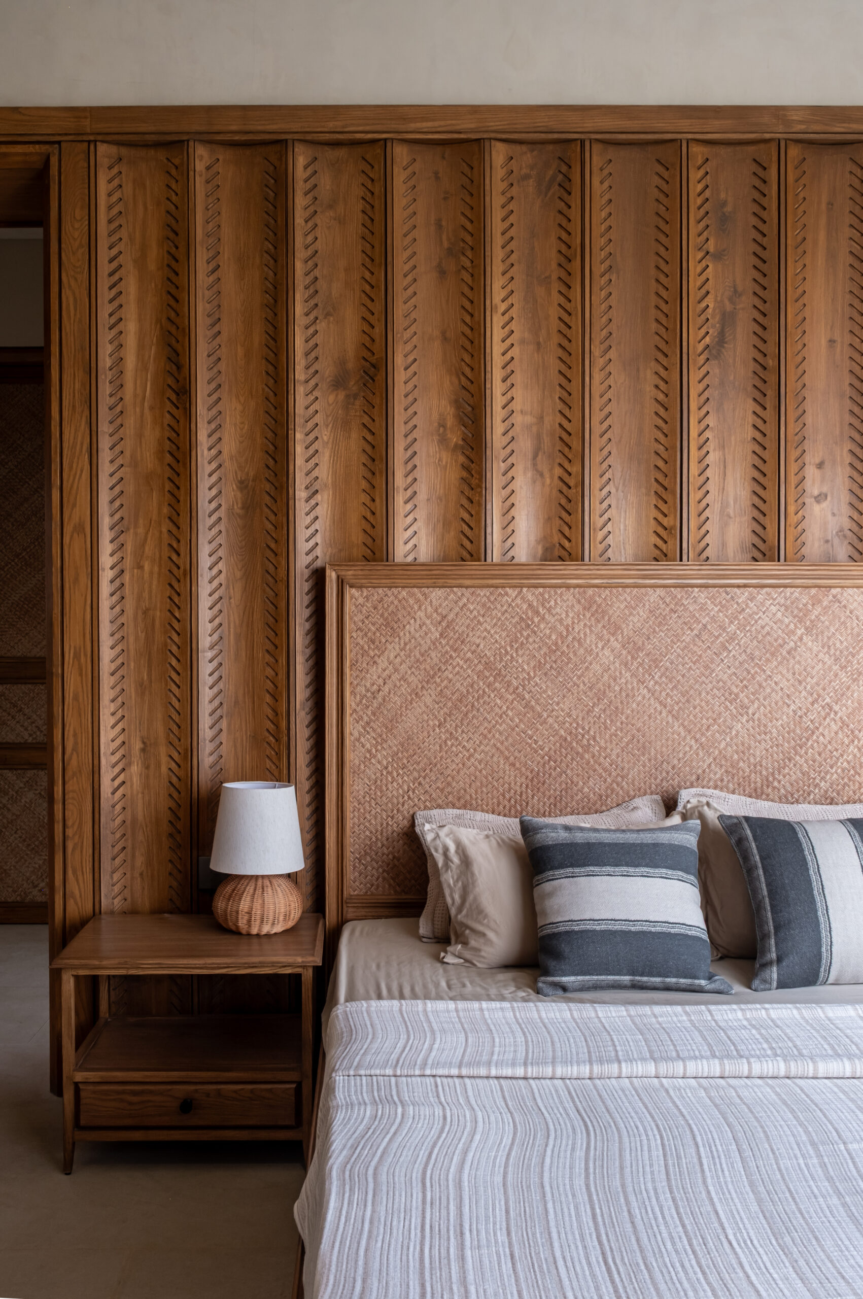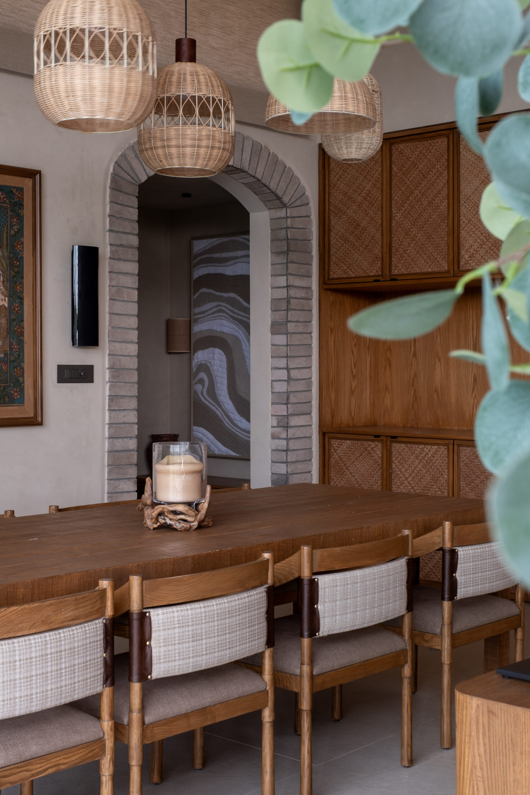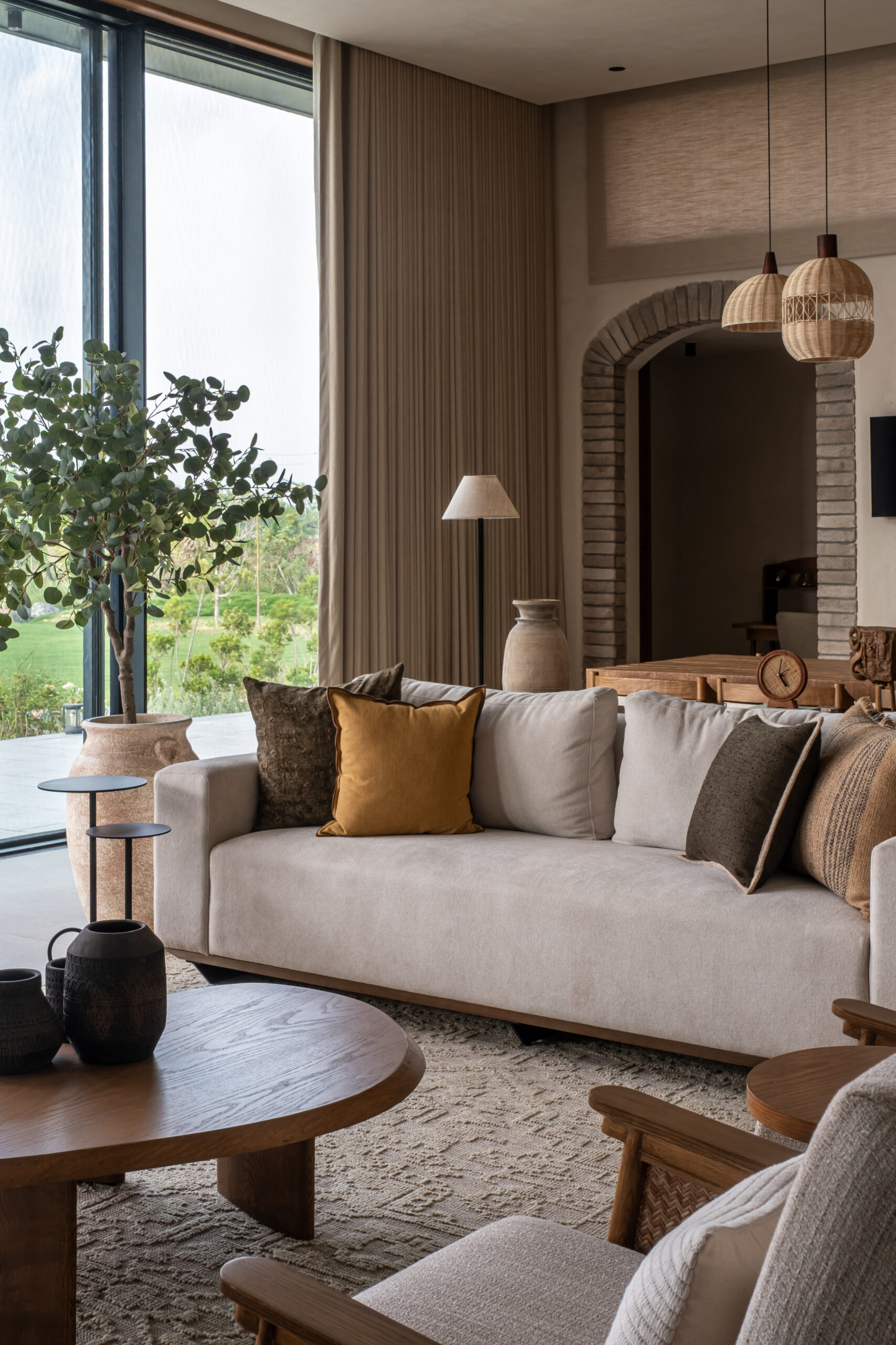 A serene, nature-connected 4000 sq. ft. farm house completed in 2024 under Adhwa’s Project Management Consultancy. The home brings together warm wood, woven textures, handcrafted details, and expansive glazing overlooking lush green views. Adhwa ensured seamless coordination, quality execution, and timely delivery—bringing the design vision to life with precision and clarity.